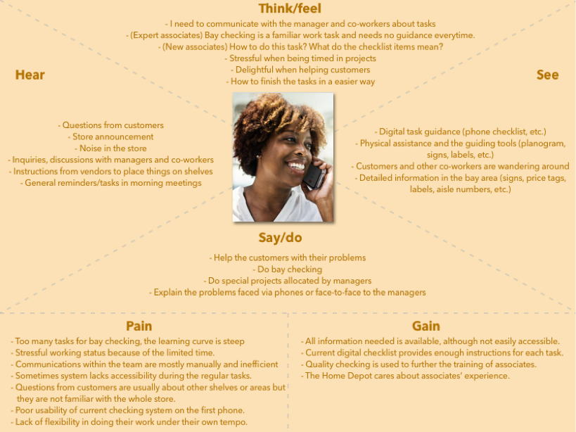 My team and I worked with Home Depot as our industry partner to figure out how to help their associates with task management and efficiency. They had too many tasks and wanted a way to balance customer needs and store needs. We designed a better system for bay checking (their main task) and project management.
